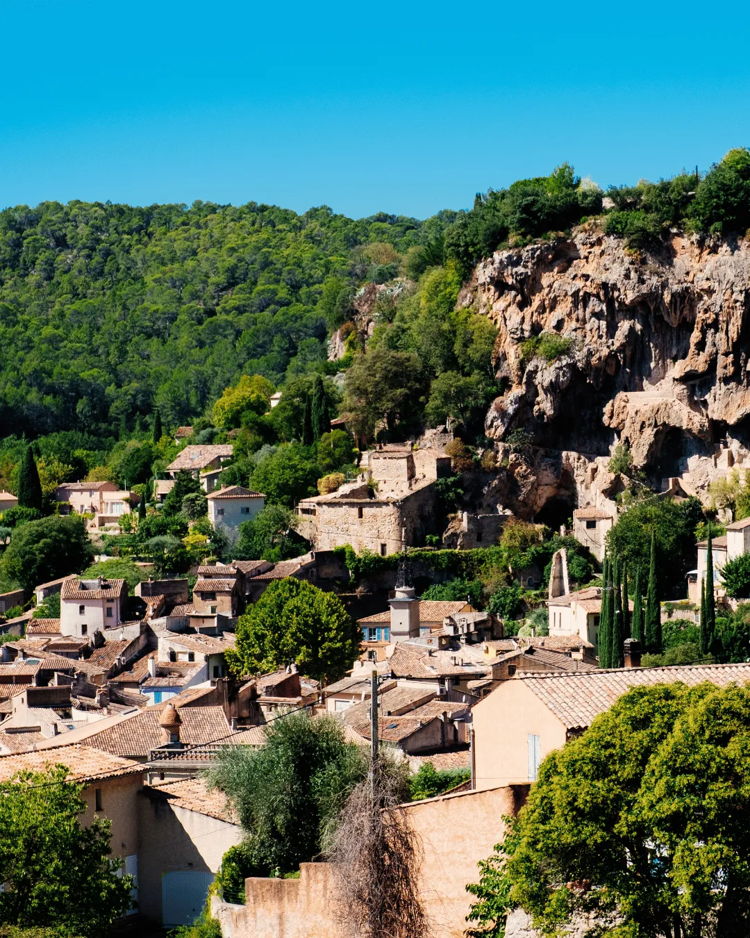 Overlooking the village stands its majestic 17th-century château, with magnificent French gardens designed by Le Nôtre. Cobbled streets lined with stone façades and houses with colourful shutters invite you to wander. In the central square, the welcoming shade of plane trees shelters cafés and terraces, where the Mediterranean art of living is savoured with a glass of local rosé in hand.